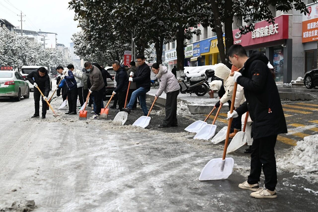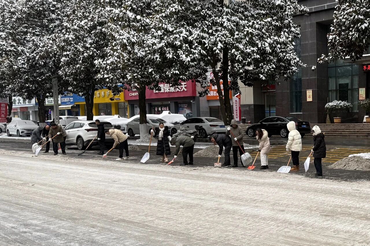 寒风中,干警们不畏严寒、不惧辛劳,手持铁锹、扫帚等工具,齐心协力,配合默契。他们有的奋力铲除厚重积雪,有的仔细清理薄冰、暗冰,有的负责将积雪清运至安全区域。尽管寒风凛冽,脸颊冻得通红,手脚也有些麻木,但大家热情高涨,干劲十足,忙碌的身影在皑皑白雪中构成了一道亮丽的风景线。经过数小时的连续奋战,责任区域内的主干道、人行道、出入口等关键位置的积雪、暗冰被清除干净,及时开辟出了一条条“安全通道”。