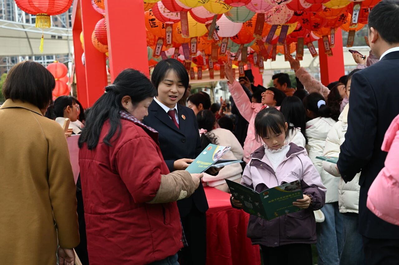 同时,干警们还通过发放内容丰富、图文并茂的宣传手册,全方位、多角度地向群众普及妇女儿童权益保障相关法律知识,真正将法治元素巧妙融入这欢乐的节庆之中,让普法宣传如春风化雨般,更接地气、更深入人心。